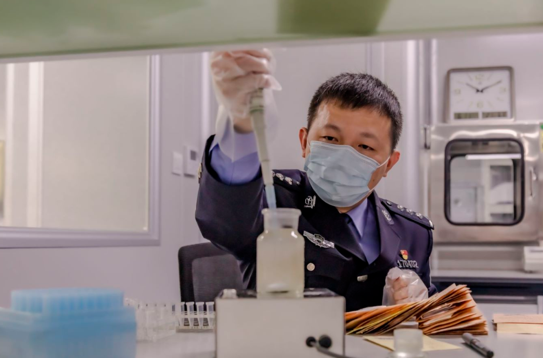 柯偉力在檢驗(yàn)DNA。臺(tái)州公安供圖
