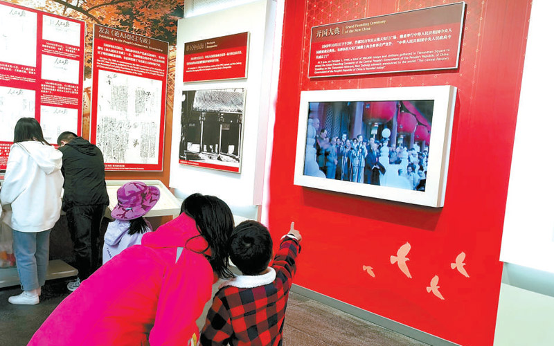 展覽當(dāng)中的一段開國(guó)大典的影像資料讓游客們紛紛駐足。“中華人民共和國(guó)中央人民政府今天成立了!”聽到錄音里毛主席的這段莊嚴(yán)宣告,游客們不由地挺直了腰桿。