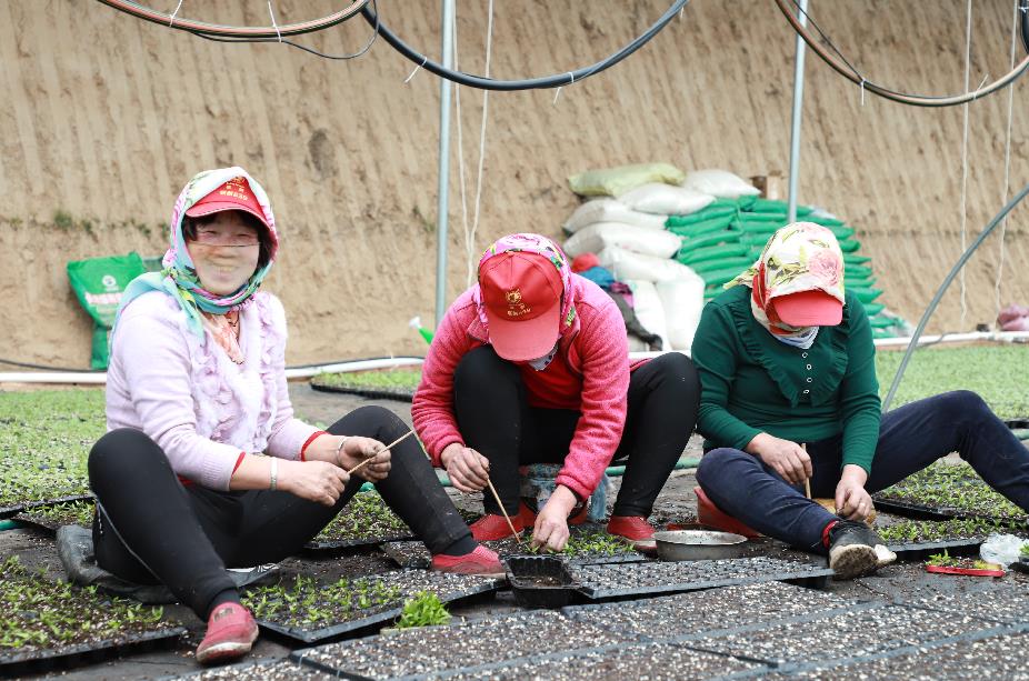“這是剛長(zhǎng)成的辣椒苗,我們抓緊時(shí)間把它們移植到育苗盤里,一坑兒一苗兒?!闭谑炀氉龉さ?6歲村民薛愛說,“節(jié)令不等人,從3月初開始張羅營(yíng)養(yǎng)土配比,然后播種、澆水、移植和管護(hù),到5月中旬進(jìn)入銷售高峰,我們就一直在這里忙。”