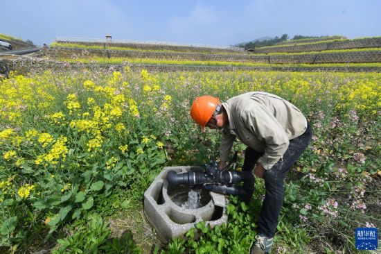 3月29日,在杭州市富陽區(qū)新登街道潘堰村的“海綿農(nóng)田”內(nèi),工作人員查看農(nóng)田下的地下隱形水庫水泵運行情況。