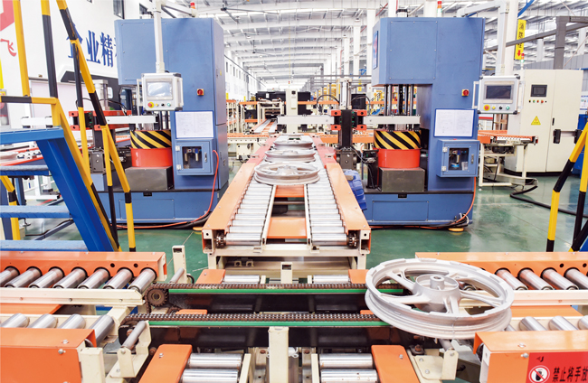 3月30日,在位于金華婺城區(qū)摩輪未來工廠生產車間里,智能生產線正在平穩(wěn)運行,全自動完成設定的輪轂加工工序。該工廠被金華市和婺城區(qū)列為數(shù)字化示范企業(yè)。企業(yè)運用5G、視覺識別等新一代信息技術,大量應用工業(yè)機器人,實現(xiàn)柔性化生產,建成裝備數(shù)字化、工藝數(shù)字化、運營數(shù)字化的數(shù)字化工廠。用工人數(shù)比傳統(tǒng)項目減少58%,生產效率提升15%。(陳俊、李建林)