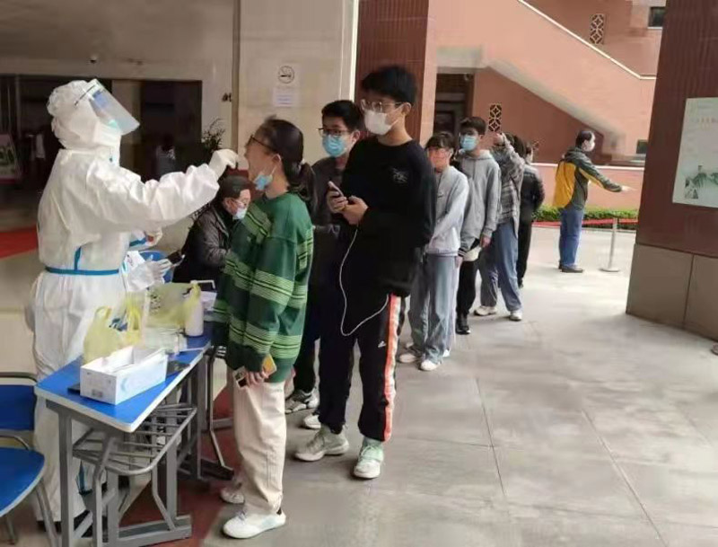 由于學(xué)校實行準(zhǔn)封閉管理,西藏學(xué)生長期住校。面對嚴(yán)峻的疫情防控形勢,及時安全的核酸檢測成為保障學(xué)生安全的頭等大事。上海市第一人民醫(yī)院得知學(xué)校希望醫(yī)務(wù)人員能進(jìn)校園對住校師生員工進(jìn)行核酸檢測的要求后,克服任務(wù)重、人手緊的困難,每周抽調(diào)醫(yī)護(hù)人員志愿到學(xué)校,解決核酸檢測的實際困難,為西藏班學(xué)生送去關(guān)心和溫暖。(龍鋼)