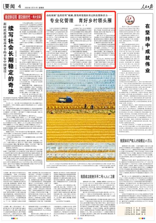 人民日報點贊山東“選育管用”機(jī)制:專業(yè)化管理 育好鄉(xiāng)村領(lǐng)頭雁