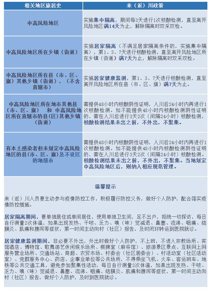 3、對有上海旅居史,于3月14日至23日的來(返)川人員,已解除管控的再進行1次核酸檢測(3月24日至28日的來(返)川人員繼續(xù)執(zhí)行居家健康監(jiān)測相關要求)。