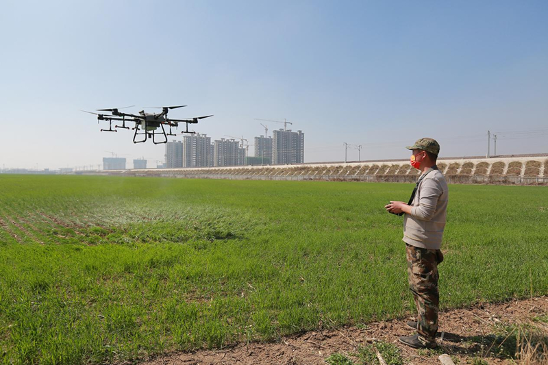 “2022年,我們合作社種植了3000畝小麥,為加強田間管護,我們與農(nóng)時賽跑,用科技助力糧食豐產(chǎn)豐收。通過推廣使用植保無人機作業(yè),大大提高了田間管護效率。根據(jù)提前設(shè)定好的飛行速度、作業(yè)軌跡,植保無人機就會按設(shè)定程序開展作業(yè)。當前植保無人機一天作業(yè)面積能達到600畝?!必S田種植專業(yè)合作社負責人王少錁說。