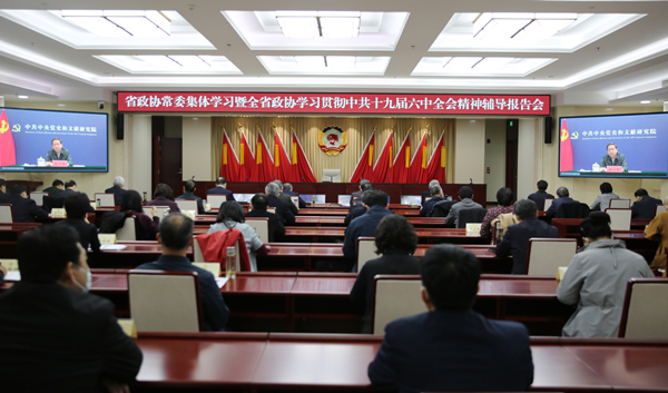 河北省政協(xié)舉辦常委集體學(xué)習(xí)暨全省政協(xié)學(xué)習(xí)貫徹中共十九屆六中全會精神輔導(dǎo)報(bào)告會對中共十九屆六中全會精神進(jìn)行系統(tǒng)深入解讀。胡澤瑞攝