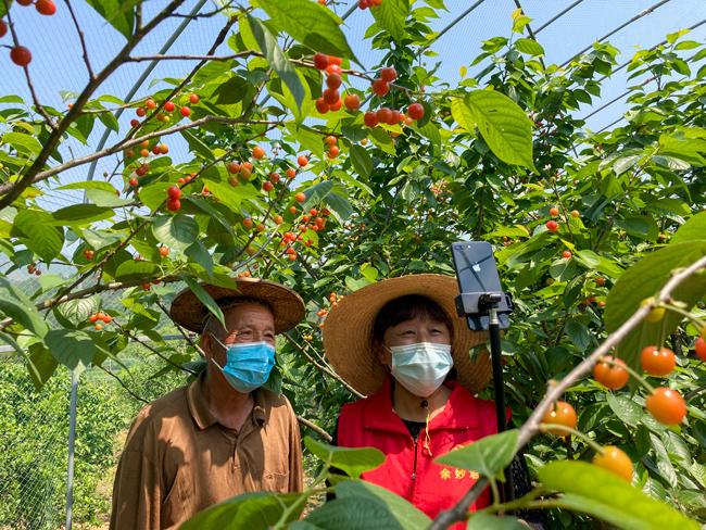 近日,在金華市金東區(qū)赤松鎮(zhèn)虎巖村,“短柄”櫻桃成熟,猶如一盞盞小燈籠掛在枝條,村黨員志愿者網(wǎng)上幫助農(nóng)戶吆喝?;r村黨支部書記王基林介紹說,全村櫻桃種植面積1300多畝,品種有傳統(tǒng)的短柄、黑珍珠以及新引進(jìn)的紅妃,櫻桃銷售收入成為村民的一項(xiàng)主要經(jīng)濟(jì)來源,這幾天天氣晴好,櫻桃成熟快,一星期后上市量更大,采摘期持續(xù)到5月初。2022年為了防控新冠疫情,村黨支部組織黨員和志愿者把農(nóng)戶采摘的櫻桃派送到指定地點(diǎn),方便預(yù)訂的客戶拿取。(時寬兵)