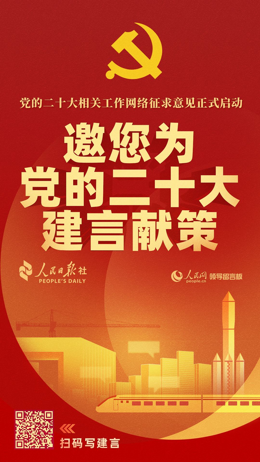 黨的十九屆六中全會決定,黨的二十大于2022年下半年在北京召開。開展黨的二十大相關(guān)工作網(wǎng)絡(luò)征求意見,充分彰顯了以習(xí)近平同志為核心的黨中央發(fā)揚(yáng)民主、集思廣益的優(yōu)良作風(fēng),是我們黨堅(jiān)持以人民為中心、尊重人民主體地位、走好群眾路線的重要體現(xiàn),是發(fā)揮中國特色社會主義制度優(yōu)勢、推進(jìn)全過程人民民主的生動實(shí)踐,是適應(yīng)互聯(lián)網(wǎng)時代新要求、推進(jìn)國家治理體系和治理能力現(xiàn)代化的有益探索。