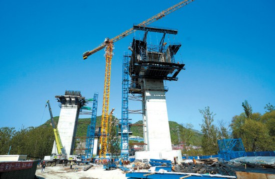 國(guó)道109新線高速陳家莊特大橋加緊施工。本報(bào)記者 程功攝