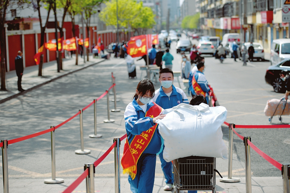 4月20日,太原市進(jìn)山中學(xué)高三學(xué)生陸續(xù)返校報(bào)到,為回校復(fù)課做準(zhǔn)備。據(jù)了解,省城各中學(xué)高三年級(jí)21日封閉式復(fù)課,復(fù)課后,師生員工和服務(wù)管理人員將實(shí)行全封閉管理。(記者阮洋攝)