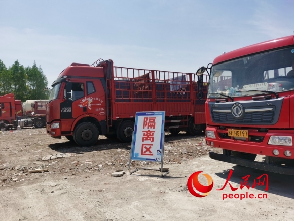 南通市崇川區(qū)陳橋街道疫情防控外來貨車集中隔離點(diǎn)。人民網(wǎng)記者 王繼亮攝