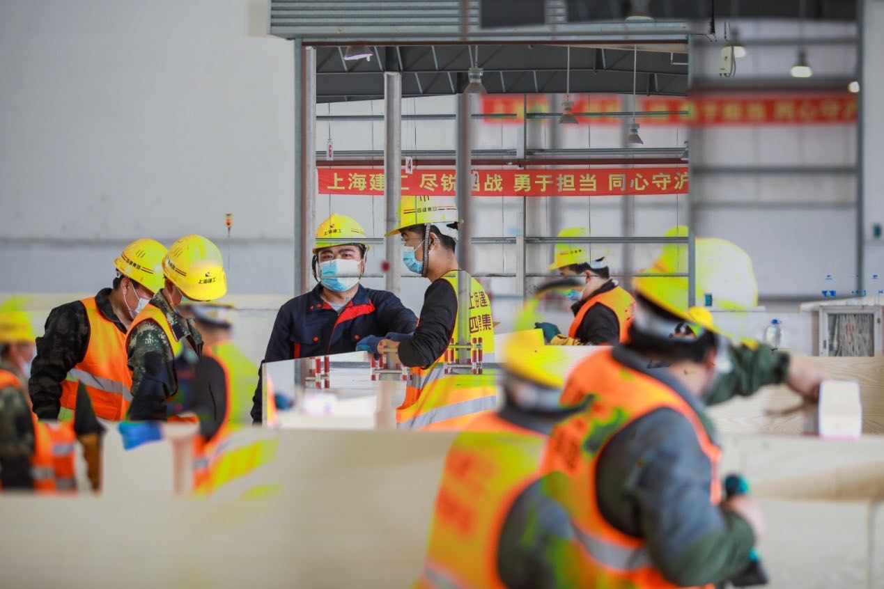 在崇明花博園區(qū),2500多名上海建工人爭(zhēng)分奪秒,正在建設(shè)超6000套臨時(shí)隔離用房,最快將于4月22日逐步投入使用……