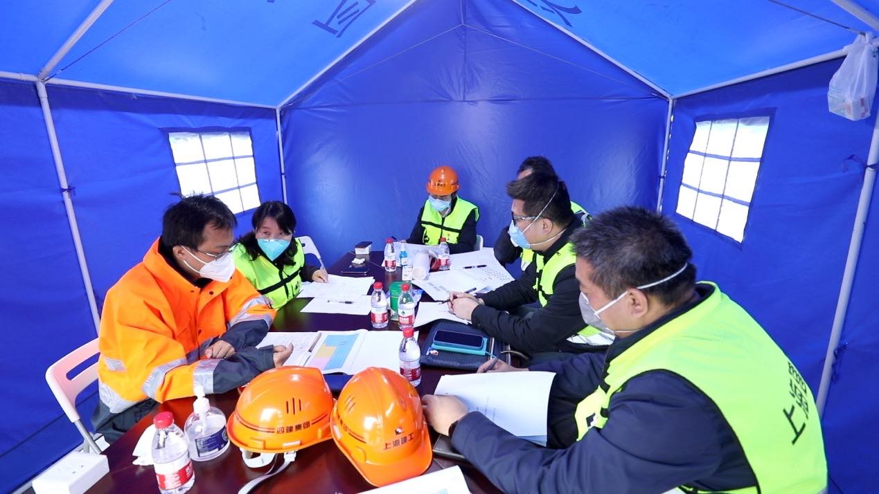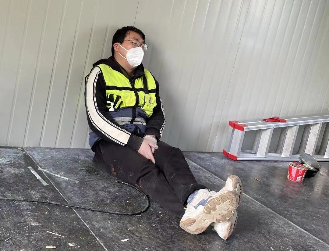 “3月底的上海,還有點(diǎn)冷,沒(méi)有被子蓋,我們就裹著衣服,每天只能睡不超過(guò)兩小時(shí)?!鄙虾=üぜ瘓F(tuán)副總工程師王美華是施工現(xiàn)場(chǎng)為數(shù)不多的女性?,F(xiàn)場(chǎng)24小時(shí)不停工,工人兩班倒,交班后就地鋪板睡覺(jué),但應(yīng)急指揮部管理人員要隨時(shí)待命,解決現(xiàn)場(chǎng)各類問(wèn)題,只能找間隙蜷縮在車?yán)镄菹⒁幌隆?/p>