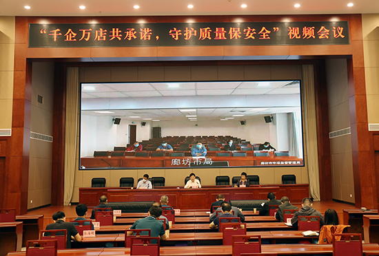 “千企萬店共承諾 守護(hù)質(zhì)量保安全”視頻會議現(xiàn)場。 河北省市場監(jiān)管局供圖