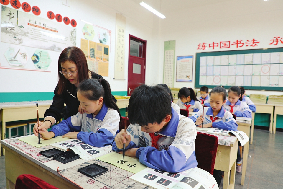 平定縣鎖簧示范小學(xué)堅(jiān)持把“練中國書法、承傳統(tǒng)文化”的理念貫穿于教書育人全過程,2021年把書法教育納入課后延時(shí)服務(wù)。張春林?jǐn)z