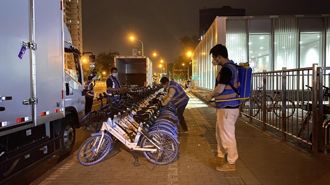哈啰單車北京團隊負責人胡濤介紹,近期團隊臨時增加42名運維人員和12輛調度車輛投入抗疫保障行動。對每輛共享單車在出庫、入庫、調運等環(huán)節(jié)中實施100%消毒,在重點景區(qū)、商圈、寫字樓以及北京站、王府井、崇文門、望京等軌道交通站點,每日分早中晚三個時段進行無差別消殺。