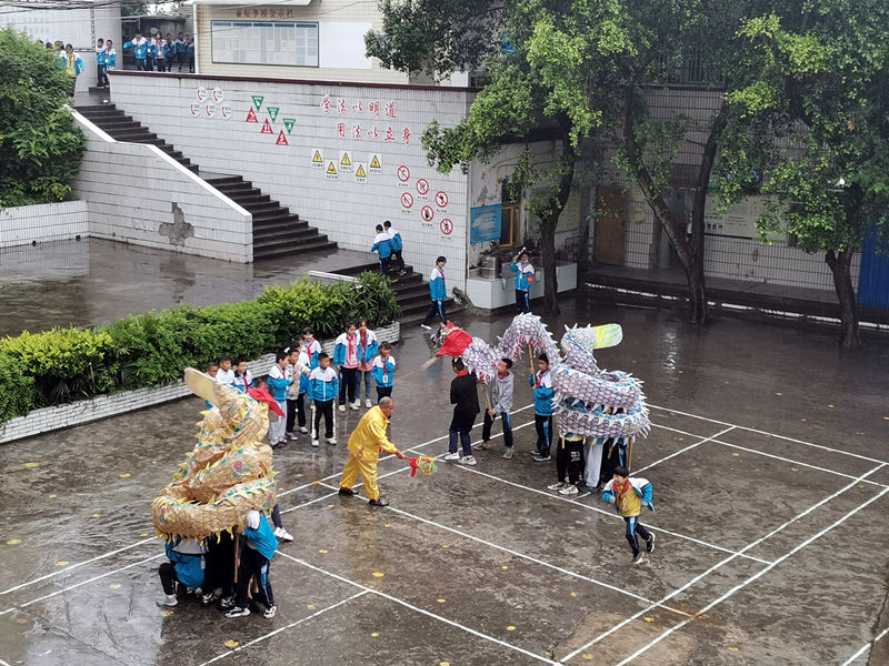 “我先是向師生傳授舞龍技藝基本動作,然后再選擇50個娃娃組建學(xué)生舞龍隊,再系統(tǒng)培訓(xùn)舞龍?!绷_德書說,從基本動作開始,再到套路訓(xùn)練、樂器訓(xùn)練,到了期末,基本就能進(jìn)行一個完整的表演了。
