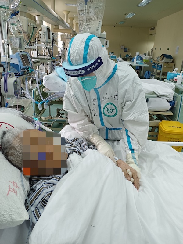 “曹醫(yī)生,我是不是能出重癥了?”張先生期待地看著醫(yī)生曹江紅,他是醫(yī)療二隊在支援該院ICU后收治的第一例重癥患者。由于糖尿病導致肝膿腫進而出現(xiàn)感染性休克危及生命,從普通病房轉(zhuǎn)入ICU。