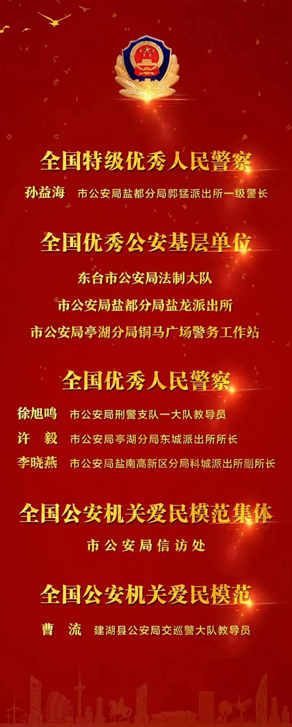 鹽城公安一批集體和個人獲全國公安系統(tǒng)表彰