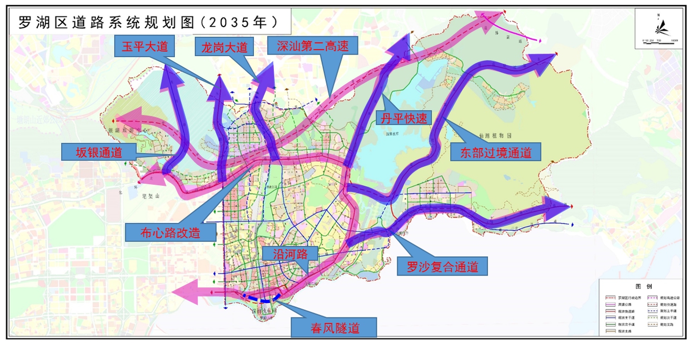 其中,“一環(huán)六射”備受關注?!耙画h(huán)”由濱海大道(春風路隧道)、沿河路、愛國路高架、布心路(布心路下沉)、深汕第二高速構(gòu)成;“六射”包括羅沙路(復合通道)、東部過境通道、玉平大道、龍崗大道、丹平快速、坂銀通道。