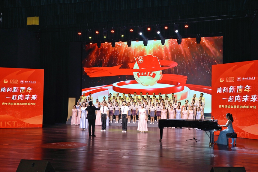“南科新青年·一起向未來”青年演說會現(xiàn)場合唱。南科大供圖