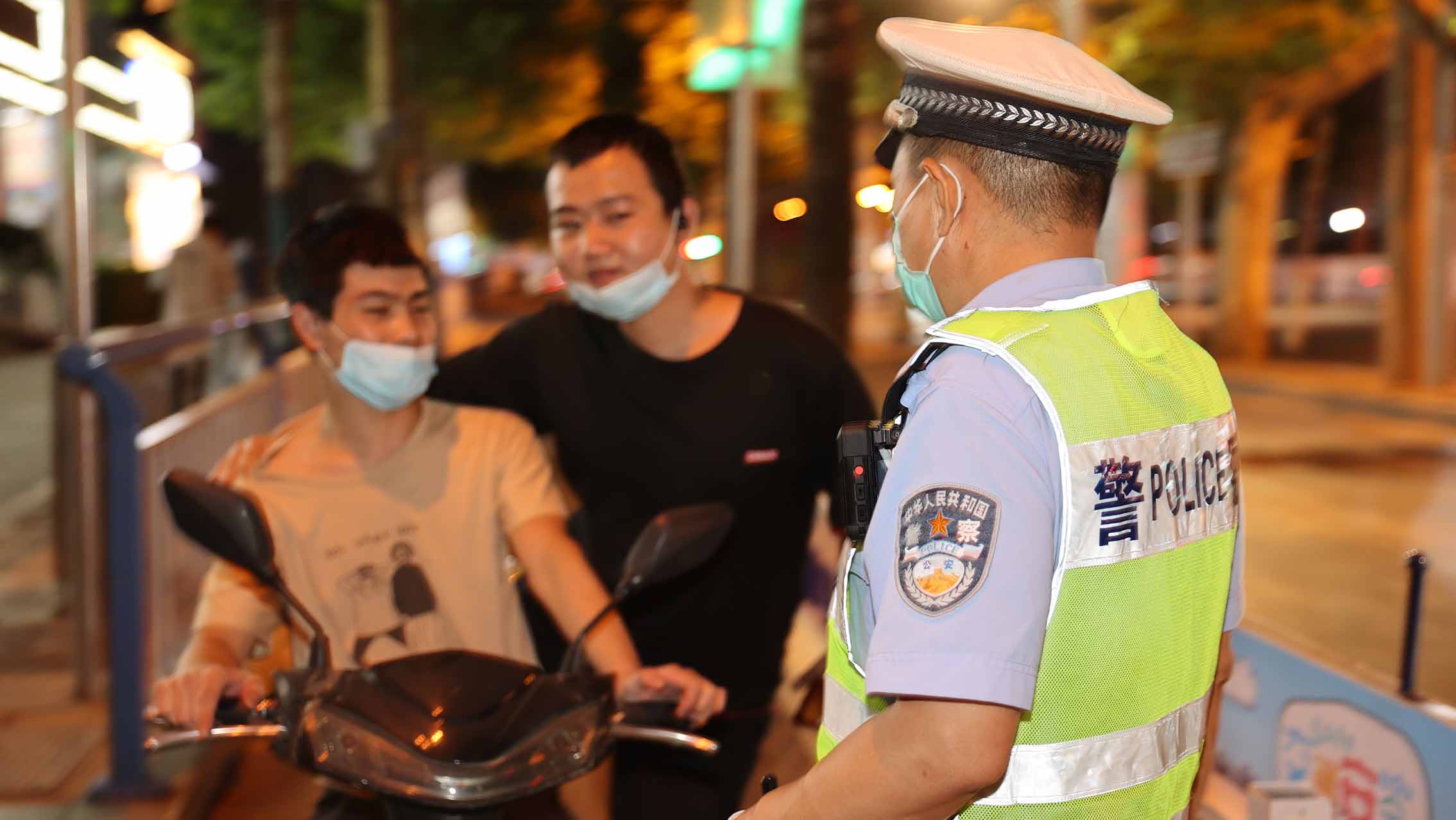 長安交警大隊(duì)民警在中山路青園街口勸導(dǎo)電動車騎乘人員佩戴安全頭盔。 王浩天攝