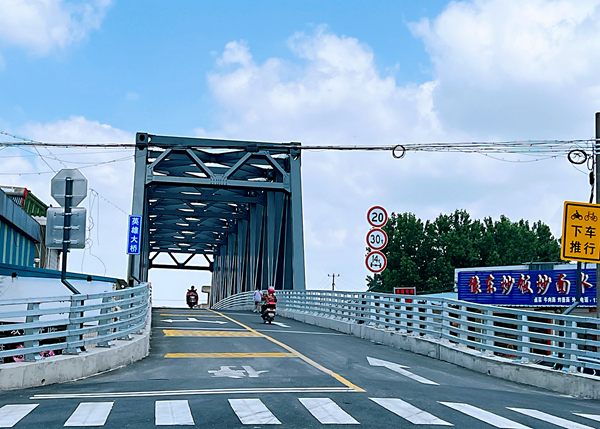 民之所盼,政之所向。2021年4月,通州區(qū)、劉橋鎮(zhèn)兩級(jí)政府啟動(dòng)英雄大橋重建程序,劃撥2800萬(wàn)元專項(xiàng)資金用于建橋,緊接著5月確定施工方案、6月進(jìn)場(chǎng)施工、12月完成橋墩沉臺(tái)施工。今年1月,主橋鋼桁架吊裝完成。