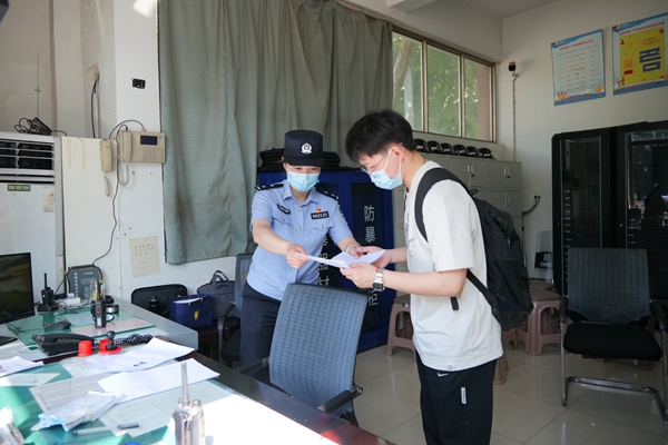人民網(wǎng)南京6月7日電(馬燾燾)“大門(mén)口這里,有個(gè)考生身份證沒(méi)帶!”6月7日8時(shí)20分許,2022年高考開(kāi)考前,江蘇鹽城市公安局鹽都分局執(zhí)勤民警在當(dāng)?shù)氐谝恢袑W(xué)考點(diǎn)巡邏時(shí)發(fā)現(xiàn)這一情況,隨即通過(guò)對(duì)講機(jī)進(jìn)行匯報(bào)。