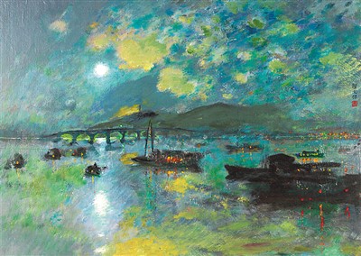 石湖串月(油畫(huà))顏文樑作