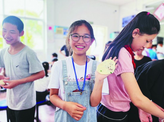同學(xué)們拿起燒餅,迫不及待地咬上一口,香酥的燒餅便從舌尖慢慢滲透開(kāi)來(lái)。品嘗著美味的燒餅,同學(xué)們個(gè)個(gè)笑開(kāi)了花。