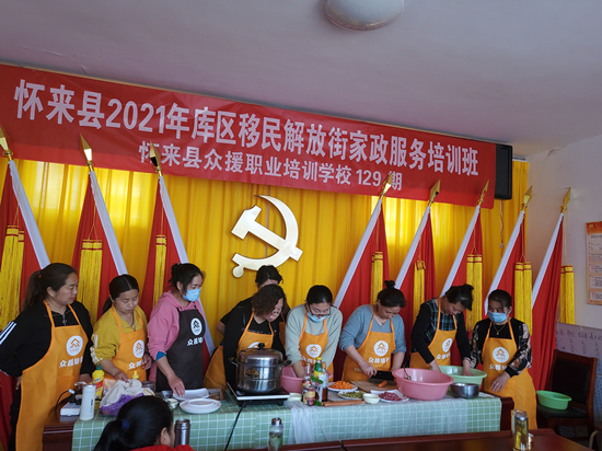 懷來縣眾援職業(yè)培訓(xùn)學(xué)校對新保安鎮(zhèn)解放街村部分婦女進(jìn)行中式面點(diǎn)專業(yè)培訓(xùn)。 懷來縣委組織部供圖