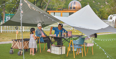 “三五好友結(jié)伴而行,喝茶賞景,好不愜意。”程曉說(shuō),“現(xiàn)在市場(chǎng)上有很多比較成熟的露營(yíng)產(chǎn)品可選擇,有的只提供帳篷等設(shè)備,需要自備餐食,有的是全包,吃住游所需都準(zhǔn)備好了,還有些個(gè)性化的產(chǎn)品會(huì)提供桌游、羽毛球等休閑項(xiàng)目?!痹隗w驗(yàn)過(guò)幾次露營(yíng)后,程曉正打算帶上父母一起戶外郊游。