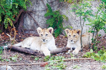 去年新生的兩只小獅子與游客見(jiàn)面。