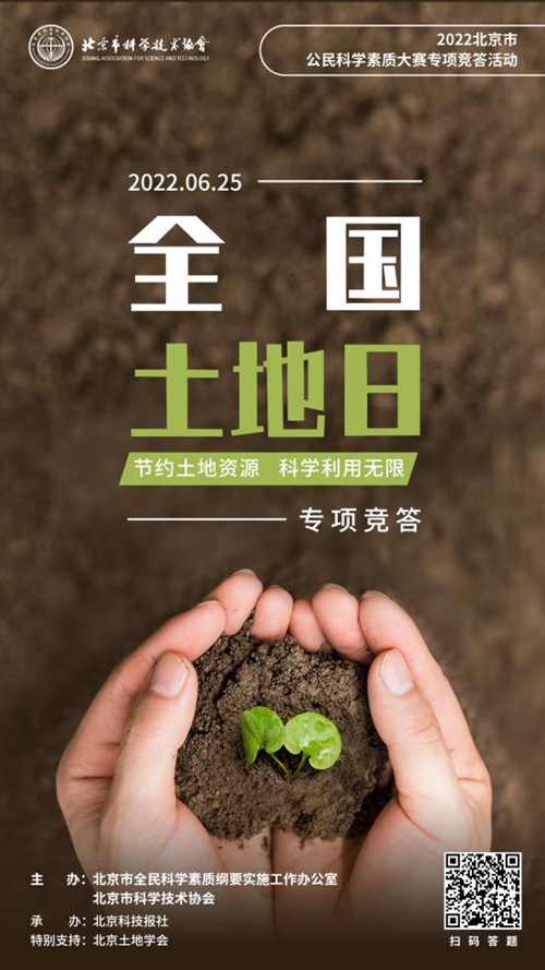 據(jù)了解,“節(jié)約土地資源 科學利用無限”專項競答活動是2022北京市公民科學素質(zhì)大賽推出的系列專項競答之一。北京市公民科學素質(zhì)大賽形式多樣,聯(lián)合北京市綱要辦成員單位、市屬學會、高校科協(xié)等開展系列專題競答,進一步貫徹落實《北京市全民科學素質(zhì)行動規(guī)劃綱要(2021—2035年)》,著力發(fā)揮“首都科普”品牌活動的示范引領作用,開創(chuàng)熱愛科學、崇尚創(chuàng)新的科學素質(zhì)建設新局面。