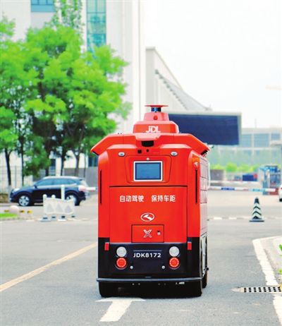 天津(西青)車聯(lián)網(wǎng)先導(dǎo)區(qū)的京東智能配送車應(yīng)用場(chǎng)景。記者 潘立峰 通訊員 袁忠清 攝