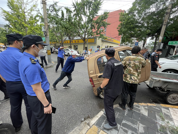 朝陽區(qū)和平街街道綜合行政執(zhí)法隊(duì)清理"僵尸車" 還"位"于民