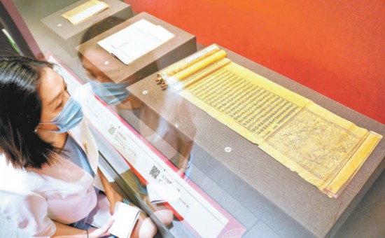 昨天,在“冊府擷珍——民族文化宮典藏古籍精品展”現(xiàn)場,觀眾仔細欣賞展品。本報記者 方非攝