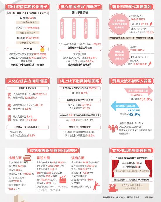 2021年是“十四五”開局之年,北京文化產(chǎn)業(yè)發(fā)展圍繞落實(shí)習(xí)近平總書記關(guān)于文化建設(shè)的重要論述,服務(wù)國家文化發(fā)展戰(zhàn)略,立足推進(jìn)全國文化中心建設(shè),以高質(zhì)量發(fā)展為主線,在疫情防控常態(tài)化形勢(shì)下,積極主動(dòng)應(yīng)變求新、穩(wěn)中求進(jìn),實(shí)現(xiàn)了“十四五”時(shí)期的良好開局。