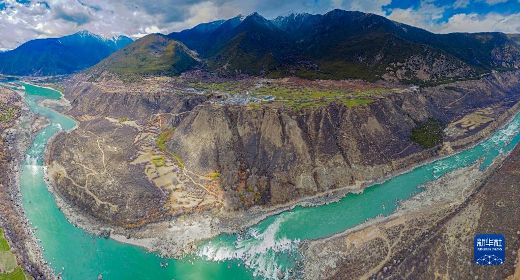 鳥瞰雅魯藏布江畔的索松村(無人機(jī)拼接照片,4月5日攝)。新華社記者 姜帆 攝