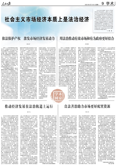 習近平總書記強調:“社會主義市場經濟本質上是法治經濟”。黨的二十大報告把“社會主義市場經濟體制更加完善”作為未來五年我國發(fā)展主要目標任務的重要內容,對構建高水平社會主義市場經濟體制作出戰(zhàn)略部署。堅持推動經濟發(fā)展在法治軌道上運行,營造市場化、法治化、國際化一流營商環(huán)境,需要深入認識法治對發(fā)展社會主義市場經濟的重要作用,充分發(fā)揮法治建設對構建高水平社會主義市場經濟體制的保障作用。怎樣理解社會主義市場經濟是法治經濟的深刻內涵,法治如何支撐高水平社會主義市場經濟體制有效構建和高效運轉?本期學術版刊發(fā)的幾篇文章,圍繞這些問題進行探討。