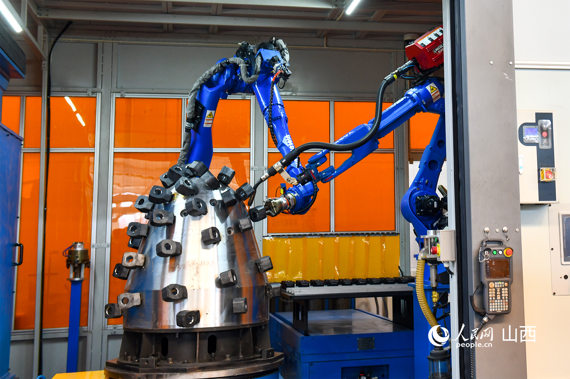 太原研究院彩虹基地生產(chǎn)車間陳列的巷道掘進裝備。人民網(wǎng)記者 焦搏文攝