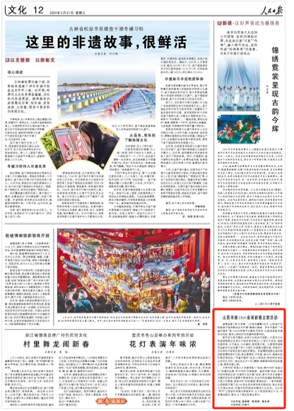 大同市的“我是小小非遺傳承人”活動,朔州市的“老城記憶”非遺作品展,忻州市的“忻腔新韻 盛世華章”活動,呂梁市汾陽賈家莊的“非遺和文創(chuàng)大集”活動,晉中市靈石縣靜升古鎮(zhèn)的民俗年非遺展示展演活動,長治市的濱湖新春游園會大型文藝展演,晉城市的“鳳鳴春曉”展演活動……春節(jié)假期,山西陸續(xù)開展了近200項各類非遺傳承實踐活動,推出多場文藝演出活動,豐富市民和游客的精神文化生活。2024年“兩節(jié)”山西省優(yōu)秀劇目展演舉行,41個院團將演出47臺、94場精品劇目,推出55個營業(yè)性演出項目。