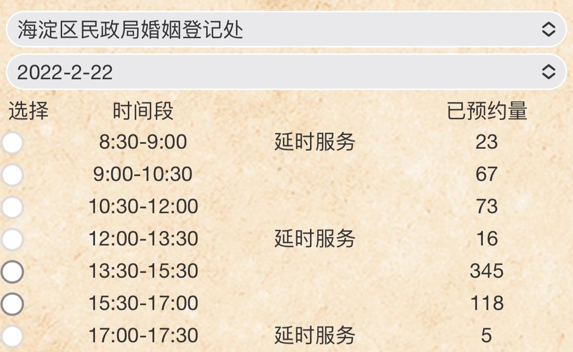 北京各區(qū)2月22日婚登預(yù)約火爆,多個時段已滿額