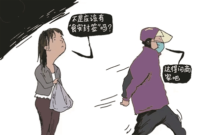 前幾天,京津冀三地消協(xié)聯(lián)合向外賣餐飲服務(wù)企業(yè)發(fā)出推廣使用食安封簽的倡議,建議企業(yè)施行“一餐一封簽”制度,并向外賣餐飲企業(yè)贈(zèng)送500萬(wàn)枚“食安封簽”,得到了 30余個(gè)品牌外賣餐飲服務(wù)企業(yè)的響應(yīng)。這種柔性倡導(dǎo)服務(wù)與法律的剛性要求相結(jié)合,可以讓食安封簽制度取得更好的落地效果,值得各地各有關(guān)部門學(xué)習(xí)借鑒。漫畫/陳彬