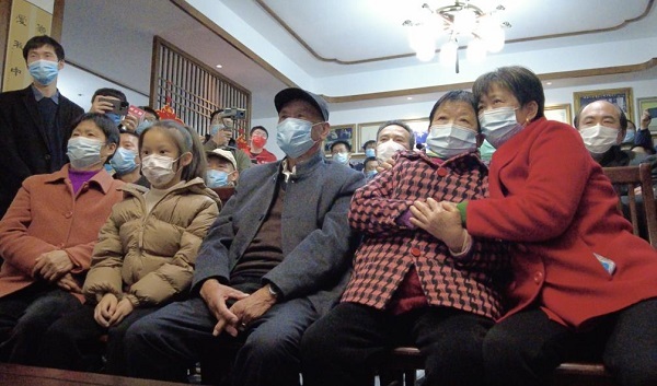 費俊龍的老同學們一起看老照片,回憶舊時光(央廣網(wǎng)記者鄭楚豫攝)