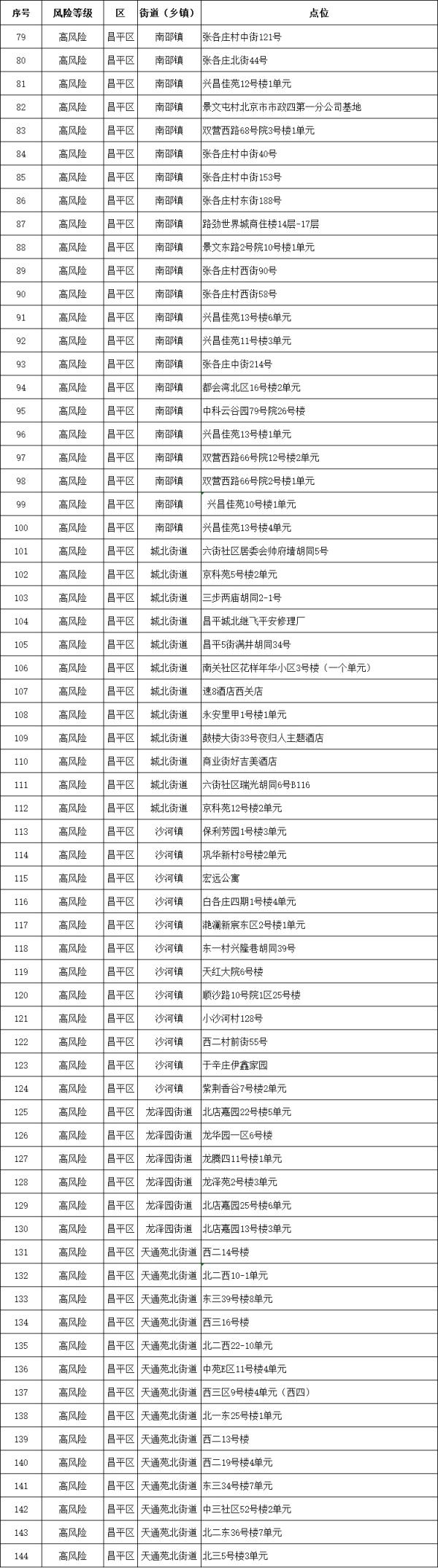 據(jù)北京市昌平區(qū)疾病預(yù)防控制中心通報(bào),截至12月4日24 時(shí),昌平區(qū)共有高風(fēng)險(xiǎn)區(qū)222個(gè),低風(fēng)險(xiǎn)區(qū)20個(gè),詳情如下: