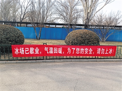 近期天氣轉暖,公園冰面雪面消融,北京全市公園及時調整冰場雪場開放和關停時間。北京市園林綠化局提醒,氣溫回升,冰面情況復雜,滑冰一定要選擇正規(guī)冰場,切勿“滑野冰”。