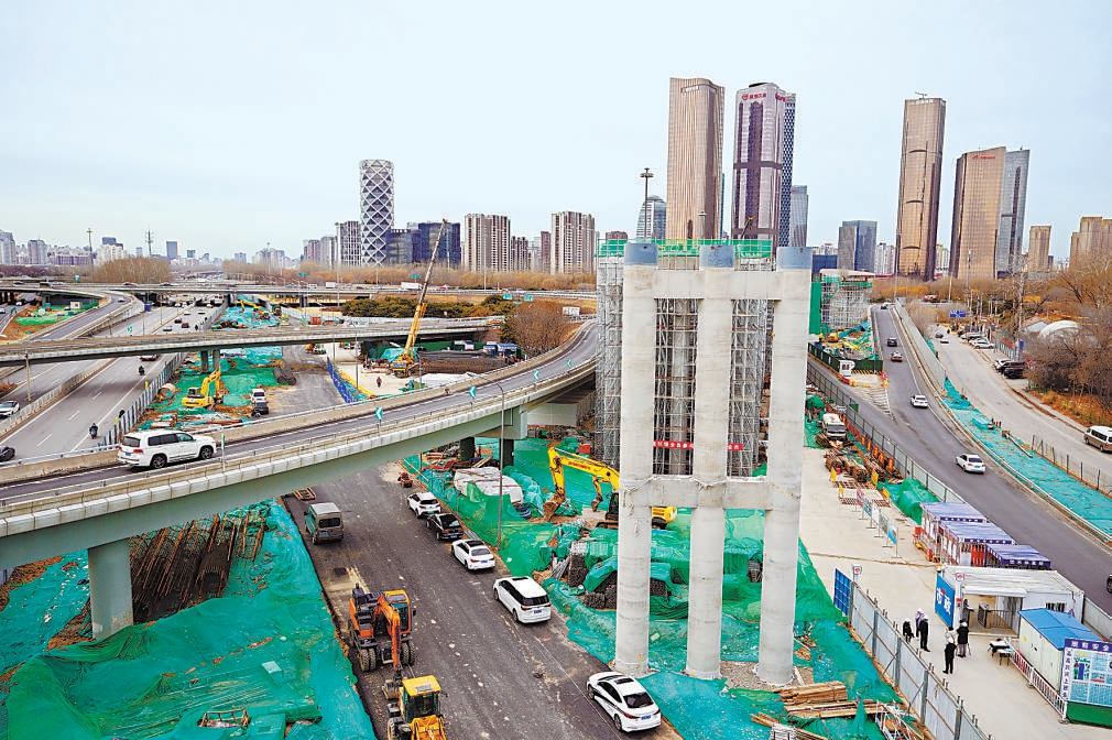 京密快速路4標(biāo)段所在的五元橋施工現(xiàn)場,工人們忙著綁扎鋼筋、澆筑混凝土、焊接鋼筋籠。目前,該項目正處于橋梁樁基建設(shè)、現(xiàn)澆箱梁、排架搭設(shè)等施工階段。 本報記者 程功攝