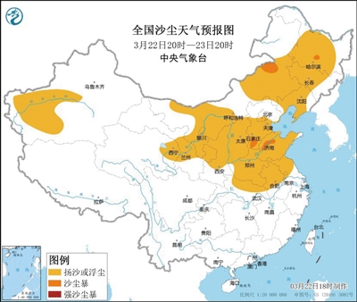 沙塵天氣持續(xù)影響我國北方地區(qū),中央氣象臺3月22日6時繼續(xù)發(fā)布沙塵暴黃色預(yù)警。當日,北京、天津、河北等地進入沙塵影響的核心時段。