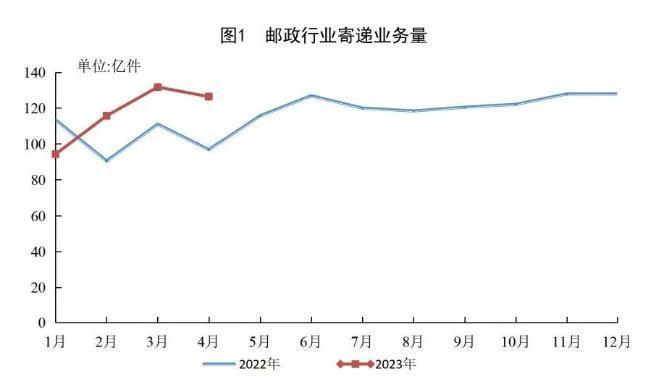 中新網5月22日電 據(jù)國家郵政局微信公眾號22日公布2023年4月郵政行業(yè)運行情況。1-4月,郵政行業(yè)寄遞業(yè)務量累計完成468.0億件,同比增長13.7%。其中,快遞業(yè)務量累計完成371.0億件,同比增長17.0%。